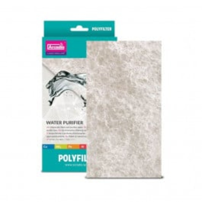 Arcadia Aquarium Poly-Filter combines chemical and mechanical filtration in one product. They are highly versatile and can be cut to size to suit various filters.Water can pass through easily, but all debris and pollutants are removed by the coarse fabric